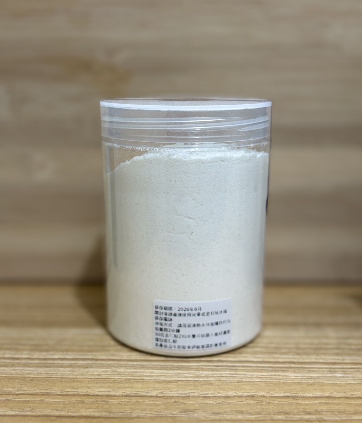 無添加香精,隨罐附上烘烤過的杏仁碎粒,酌量加入杏仁茶中風味更佳!